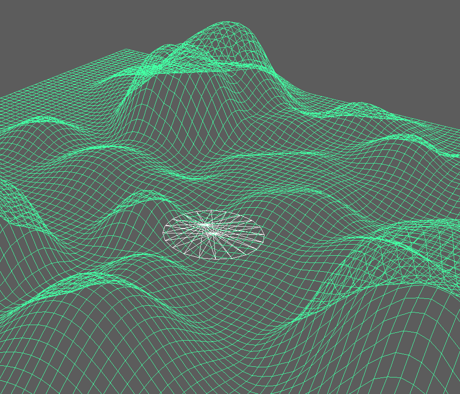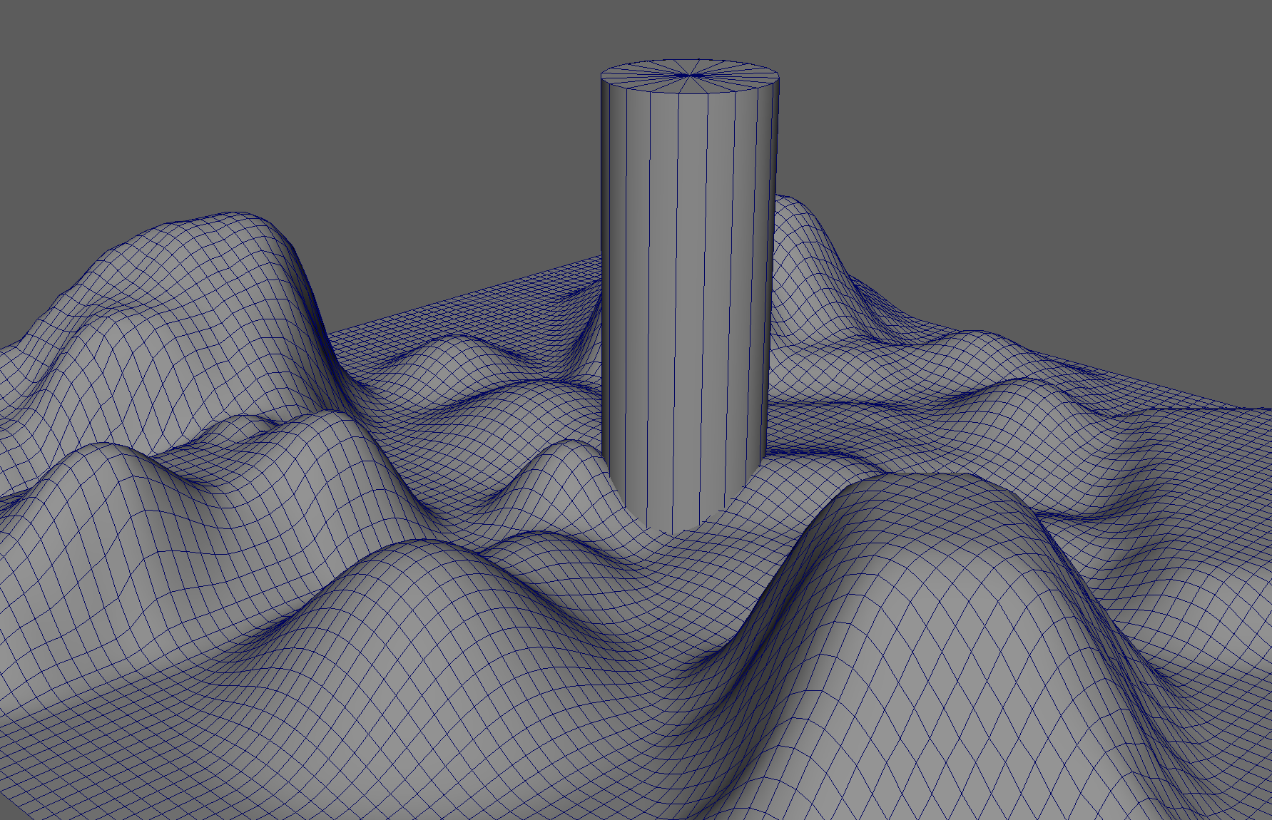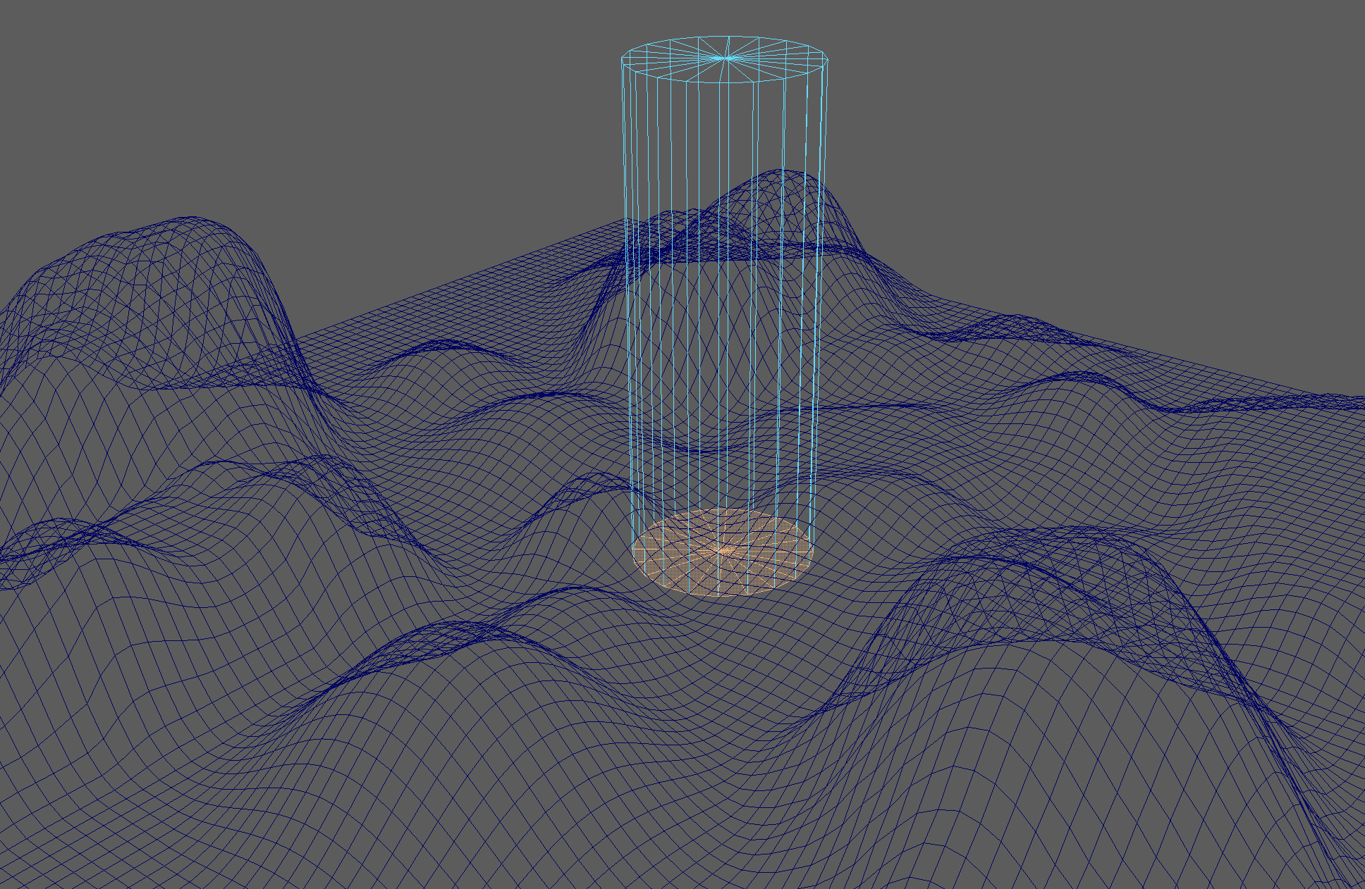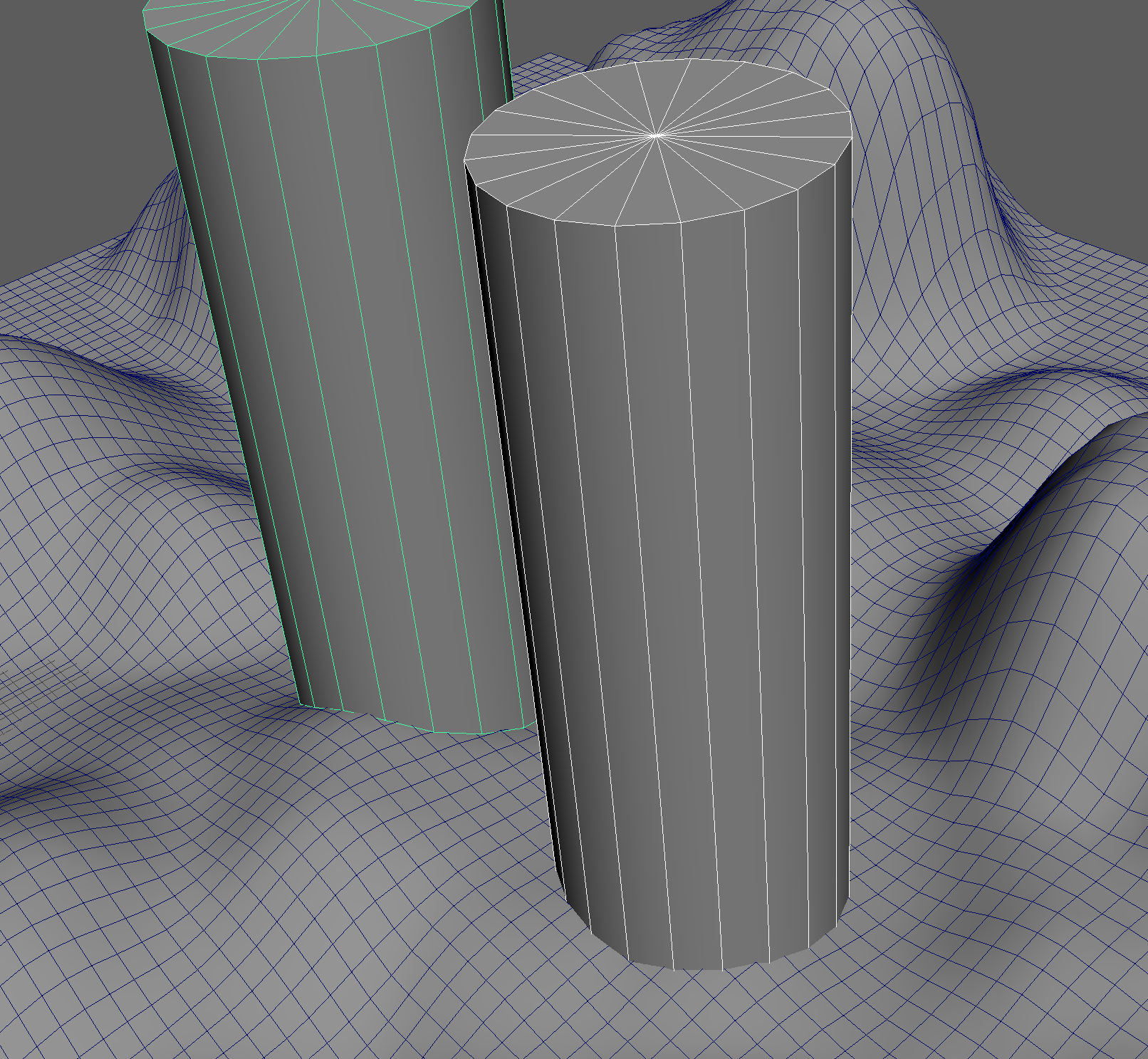 ・(左側)円柱の底面が地面の形状に沿って変形することがてきました!