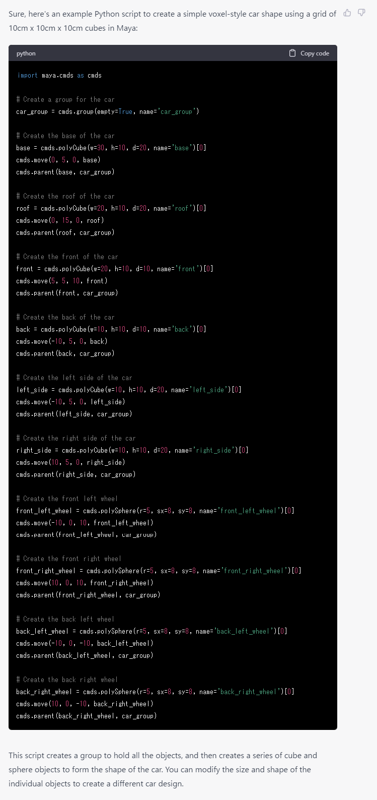ChatGPTでモデル作成用のスクリプトを作ってみようと思います。