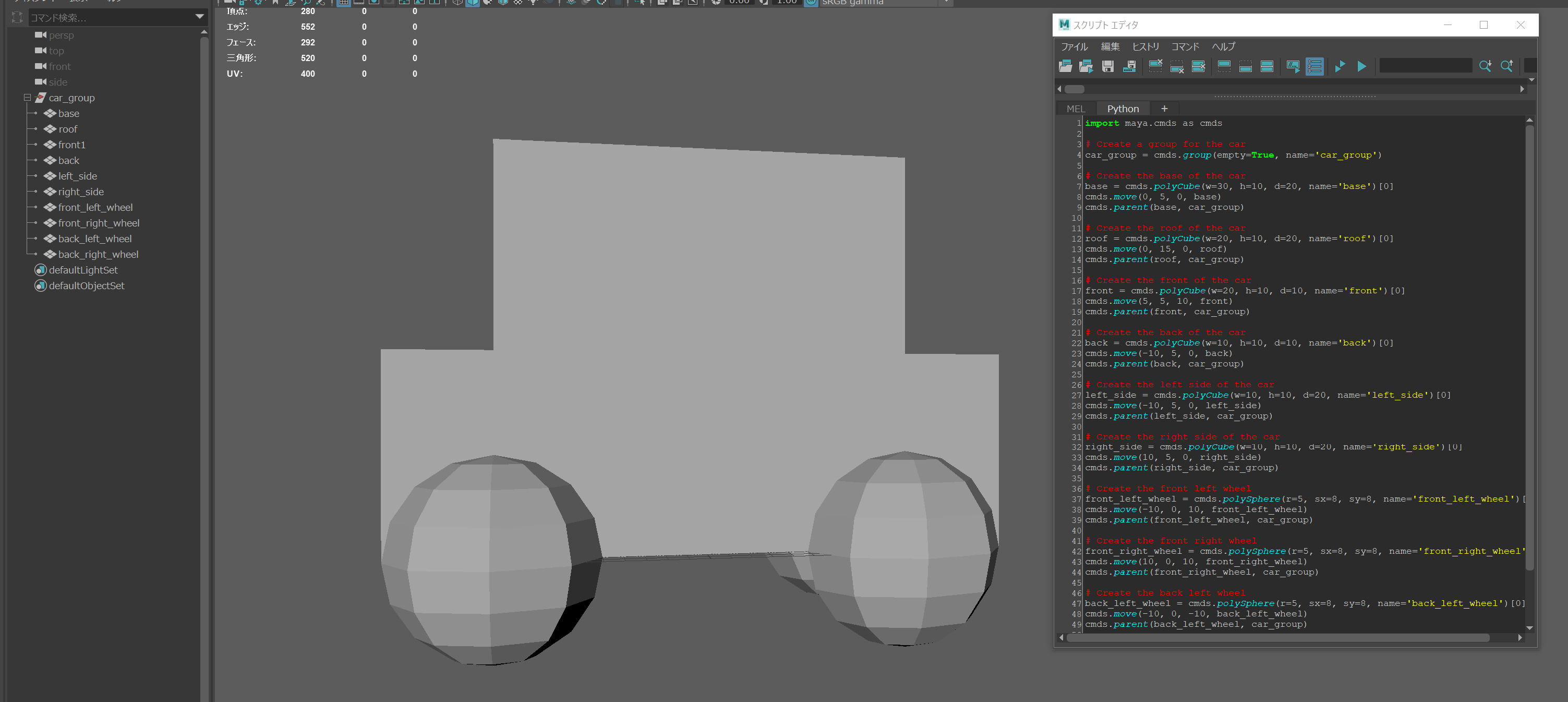Mayaで実行してみると、