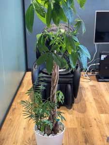 マッサージチェアの前に観葉植物があるので、それをチェアの前に少しずらすと、